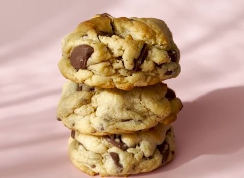 These cookies stay thick because the dough starts cold, the butter stays firm, and the dough chills before baking. These steps prevent spreading and help the cookie rise upward instead of outward. The mix of baking soda and baking powder also gives the cookie a soft lift, leaving the center tall and rich.