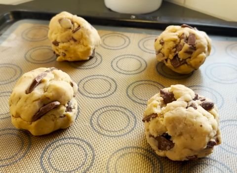 - Place the dough balls on a tray and freeze them for at least 2 hours. This step helps keep the cookie thick and rich when it bakes.