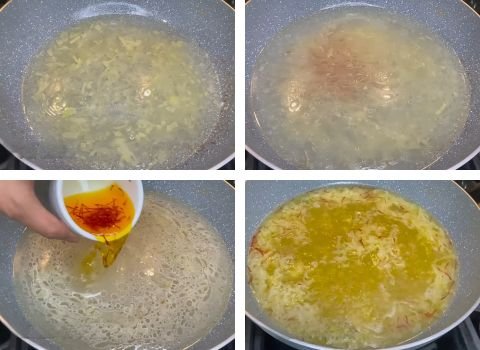 This small step ensures better color and gentle taste throughout the dish without wasting saffron.