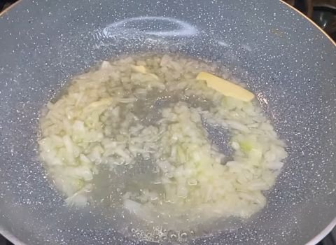 - Add one small diced white onion to the pan. Stir gently. Cook on low to medium heat. The onion softens and turns clear. Keep the color pale. This step builds gentle flavor.