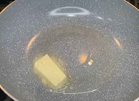 - Set a medium pan on low to medium heat. Add three tablespoons of oil and two tablespoons of butter. Let the butter melt slowly. Stir once to blend.