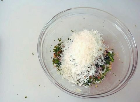 Add 1 teaspoon dried oregano and 1 teaspoon dried basil directly to the bowl. Then add 1 tablespoon of finely chopped fresh parsley and 1 teaspoon of fresh thyme leaves. Strip the thyme from its stems before chopping. Add ¼ teaspoon of fine sea salt, ½ teaspoon of fresh ground black pepper, and a pinch of crushed red pepper flakes if desired.