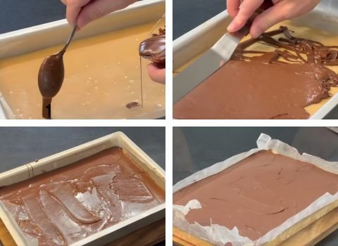 Spread the melted chocolate evenly over the caramel layer. Use a knife or spatula to smooth it out. Chill again for another hour or until the chocolate is set.