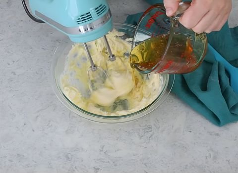 Pour honey slowly into the whipped butter. Start the mixer on low speed to avoid splashing. Blend until the honey fully mixes with the butter. The mixture should look smooth and glossy.