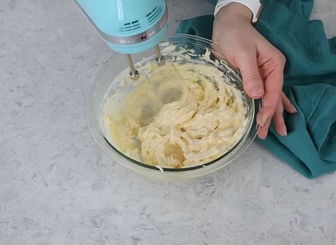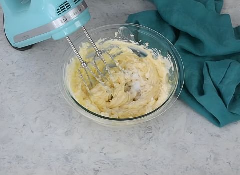 Use a hand mixer on medium speed to beat the butter. Continue until the butter turns pale and fluffy. This step adds air and gives the butter a light feel. Scrape the bowl sides using a spatula to keep texture even.