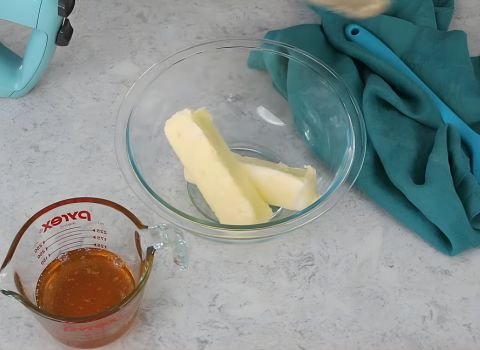 - Pour honey slowly into the whipped butter. Start the mixer on low speed to avoid splashing. Blend until the honey fully mixes with the butter. The mixture should look smooth and glossy.