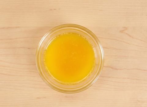 3. Line a baking sheet with parchment paper or a silicone mat and lightly grease it. Melt butter and mix with 2–3 tablespoons of lemon juice.