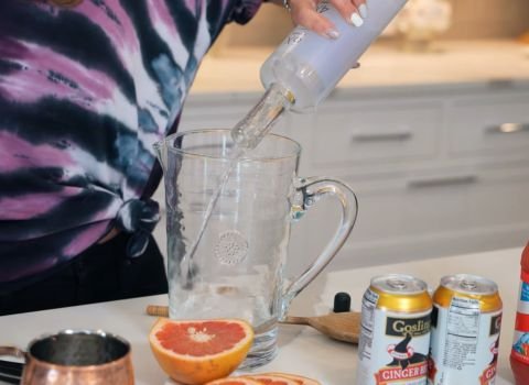 Use a long spoon to stir everything together. Mix it just enough so the vodka, juice, and ginger beer blend well. Don’t stir too fast – you don’t want to lose all the bubbles.