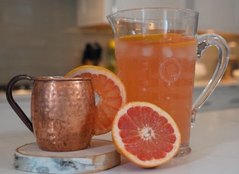 Carefully pour the chilled drink over the ice. Add a slice of fresh grapefruit to the rim or float one inside the mug. It looks lovely and adds a bit more aroma.