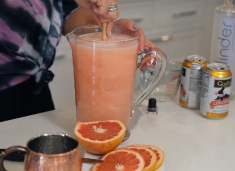 - Pour the drink over ice. Garnish each mug with a fresh grapefruit slice on the rim or floating inside. Serve immediately and enjoy your refreshing Red Lobster Ruby Mule!